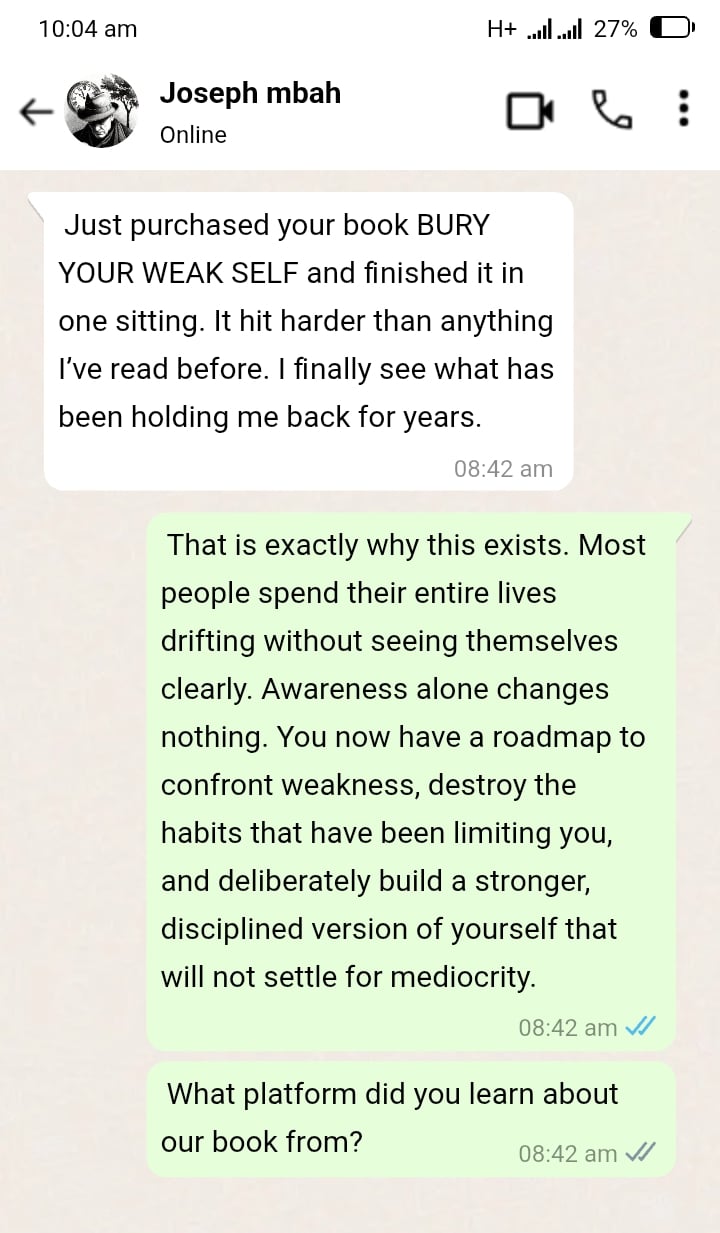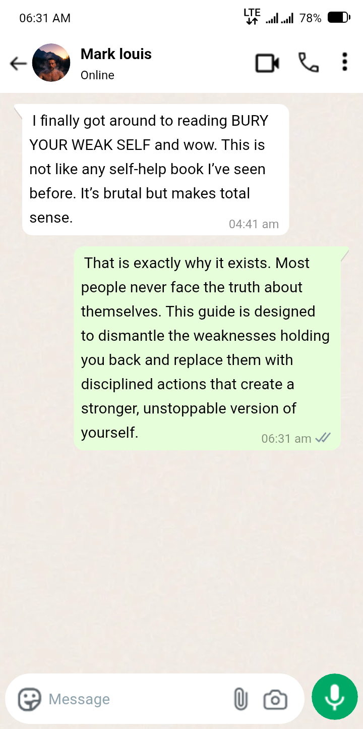You’d get a PDF guide ⚔️ that exposes your weaknesses and shows exactly how to kill them. Step-by-step methods to forge a stronger, disciplined version of yourself.